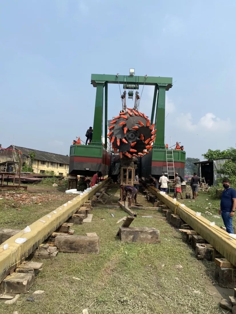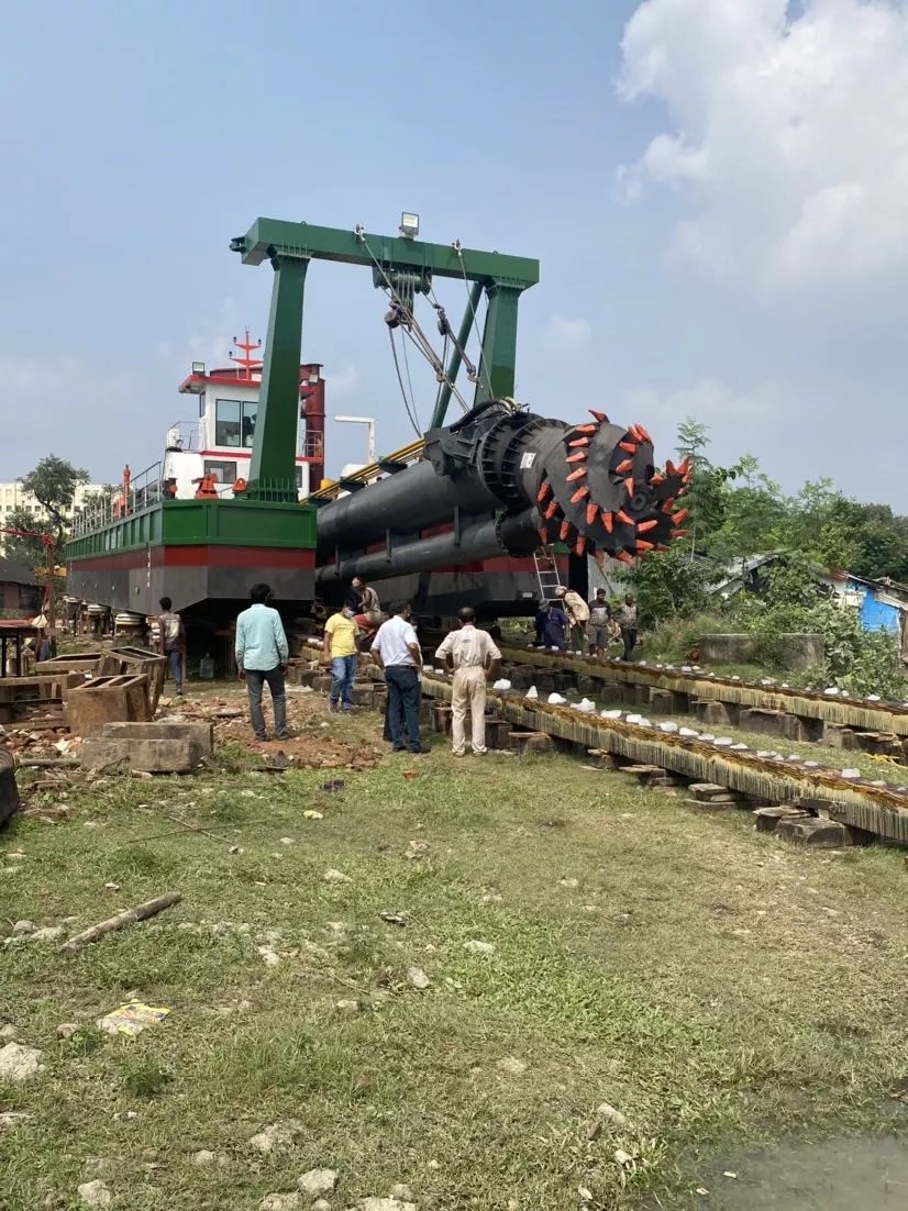 2020年10月22日,我公司為印度客戶定制的流量5000立方挖泥船順利下水,調試完成!