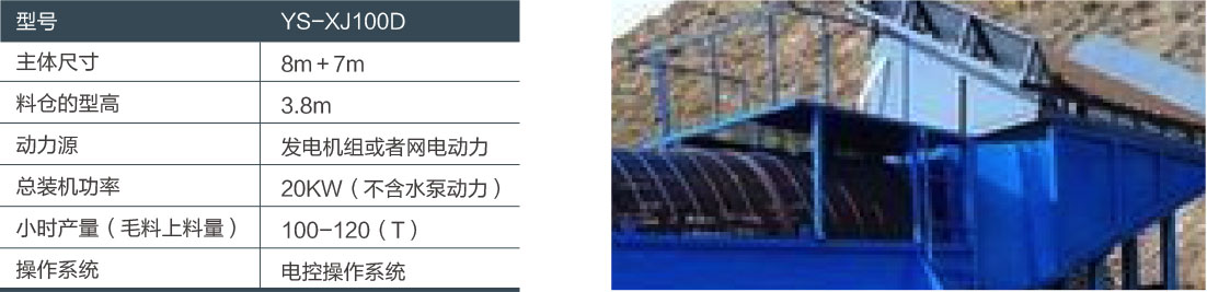 永生YS-XJ100D篩沙機,砂石分離機選礦設(shè)備物料進入料倉后經(jīng)過水流沖擊,再經(jīng)過篩分,礦漿進入選金流程,由選金溜槽進行初選,然后進入蠕動金床二次選金。